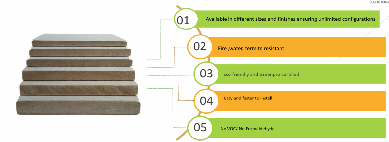 EcoPro boards are versatile and eco-friendly boards manufactured by an asbestos-free process. These boards are composite of special grade cellulose fibre cement, fly ash, cotton rag pulp, recycled newsprint paper, and other binders.